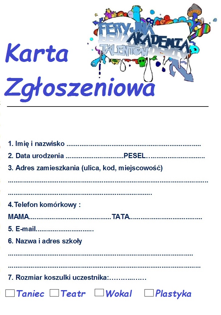 Jest to pomysł nowatorski a zarazem bardzo szalony, bo jak inaczej da się zabić nudę w tym mieście jak nie zabawą? Ferie to doskonały czas na doskonalenie swoich umiejętności artystycznych bądź ich odkrywanie. My właśnie dajemy Ci taką okazję. Masz zdolności aktorskie, chcesz zaprezentować się na scenie? A może Twój głos potrafi przenosić góry o budzić najskrytsze marzenia? Jeżeli Twoje obrazy potrafią ożywiać, a kreatywność aż Cię roznosi? A już na pewno odnajdziesz się tu, jeżeli Twoje serce się same rwie do tańca w tyrm największych hitów.